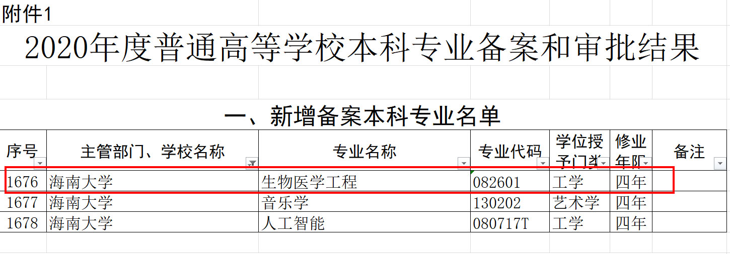 日前,教育部发布《教育部关于公布2020年度普通高等学校本科专业备案和审批结果的通知》(教高函〔2021〕1号),小宝影院 申报的生物医学工程本科专业(专业代码:082601)获教育部批准备案。