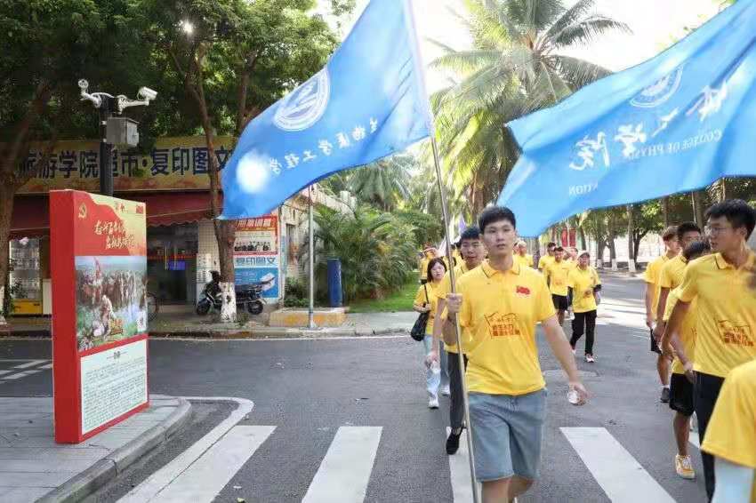 党员、入党积极分子于参加学校组织的“师生接力重走长征路”活动。从学校行政楼广场出发,7:40顺利与其他28个学院会师思源礼堂。