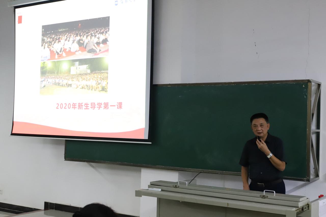 胡校长曾先后获得全国科教兴国创新人才奖、海南省优秀教育工作者、海南省劳动模范、海南省教学名师、海南省道德模范、海南省优秀共产党员等荣誉。课上他以“本科四年是人才成长最重要的黄金四年”为主题,从“命运、责任、理想、幸福、尊严”五个关键词展开,向同学们进行了一场深刻的入学教育。