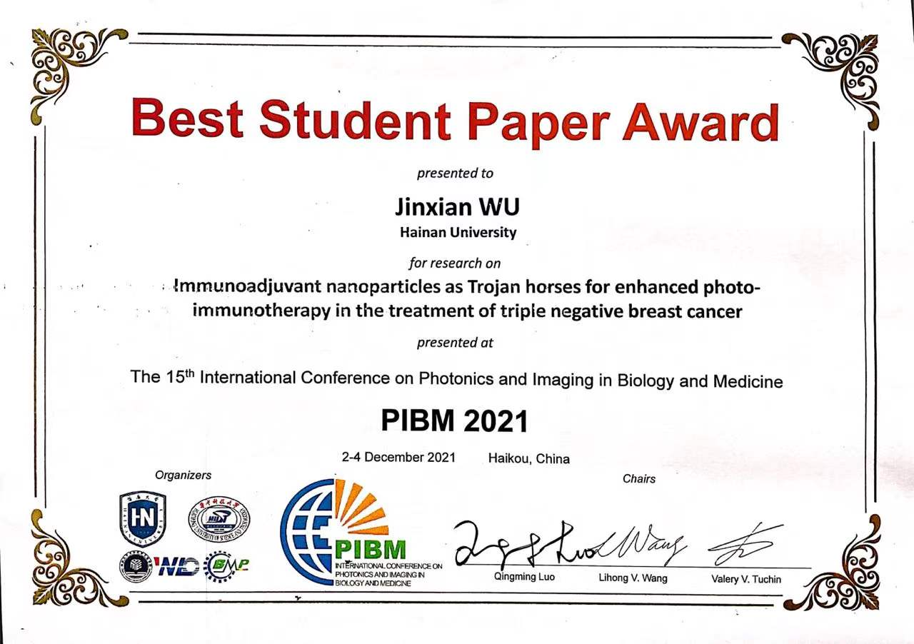 2021年第十五届国际生物医学光子学与成像会议(The 15thInternational Conference on Photonics and Imaging in Biology and Medicine, PIBM 2021)于12月2至4日在海南省海口市召开。生物医学光子学与成像技术国际学术研讨会(PIBM)是亚洲地区规模最大的生物医学光子学国际盛会之一。1999年创办至今,已连续成功举办了十四届。今年首次在小宝影院
