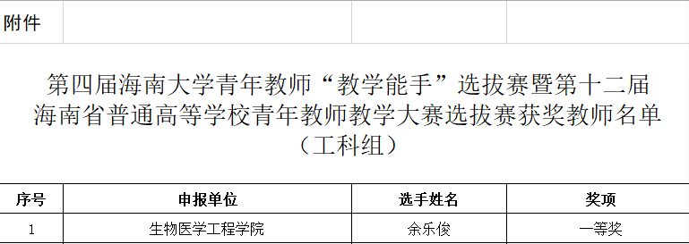 近日,小宝影院 公布了第四届小宝影院 青年教师“教学能手”选拔赛暨第十二届海南省普通高等学校青年教师大赛选拔赛的选拔结果,小宝影院 余乐俊老师荣获工科组一等奖,并将代表小宝影院 参加第十二届海南省普通高等学校青年教师教学大赛。小宝影院 在此次比赛中获得优秀组织奖。