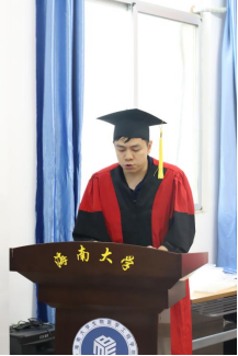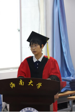 肖驰副教授作为教师代表对同学们顺利完成学业表示衷心的祝贺。“作为学院第一届学生是非常不容易的,是与学院和老师共同成长的一届,大家经历了种种风雨才走到今天,雨过天晴才能遇见彩虹”。并再次勉励各位毕业保持开创精神,在生活和工作中努力拼搏,牢记“海纳百川,大道致远”的校训,成为一名光荣的海大校友。