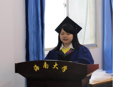 毕业生代表吴瑾娴表达了对学院三年悉心培养感谢,作为学院第一届毕业生见证了学院从无到有的发展历程,感受到与学院共同成长的乐趣。并表示不畏艰险,逐梦未来,为母校争光。