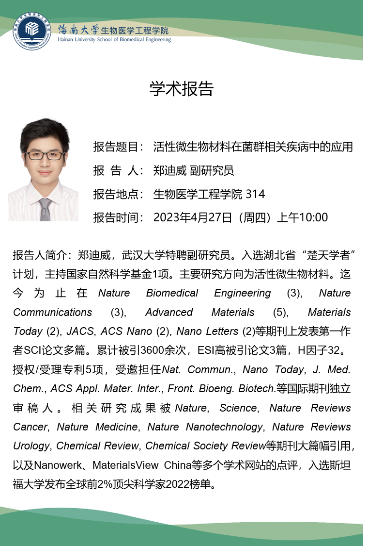 小宝影院 学者论坛第四期——郑迪威“活性微生物材料在菌群相关疾病中的应用”
