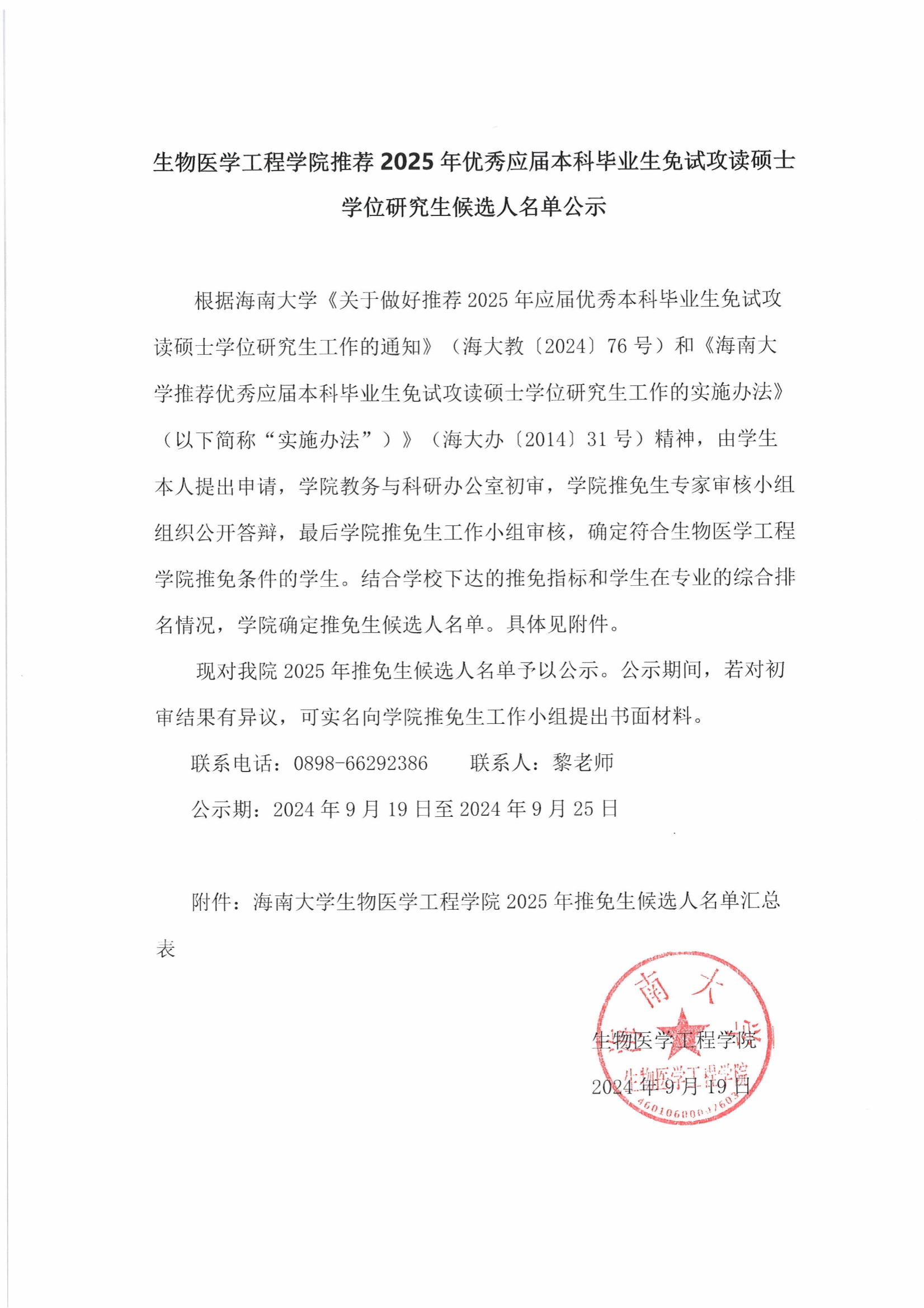 小宝影院 推荐2025年优秀应届本科毕业生免试攻读硕士学位研究生候选人名单公示