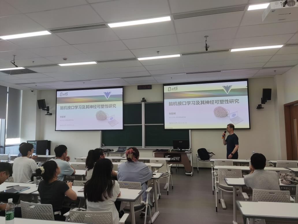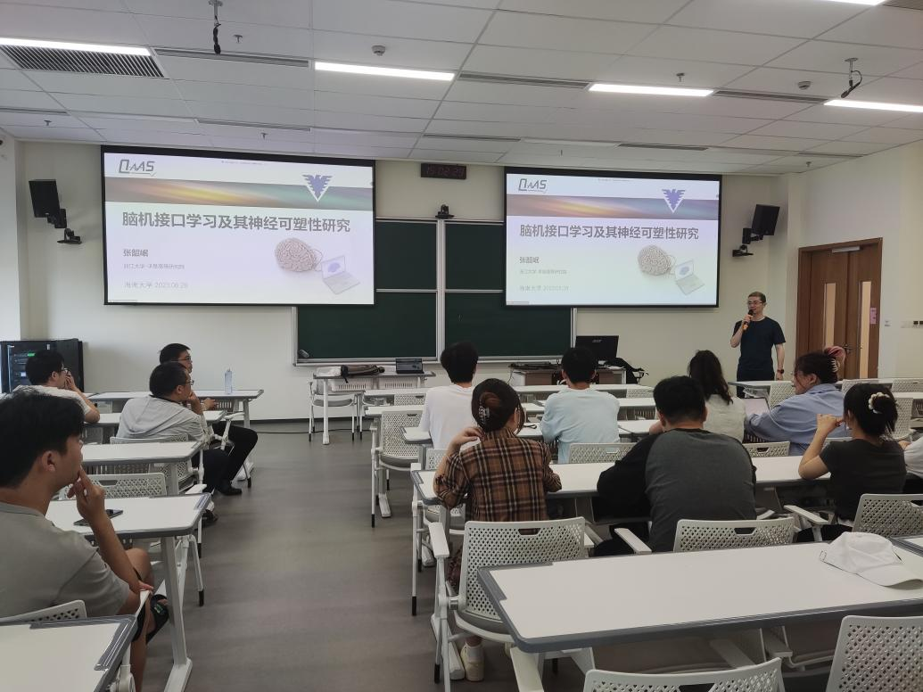 学者论坛第七期在生物医学健康研究中心2楼会议室召开,浙江大学张韶岷老师为学院师生开展题为“脑机接口及其神经可塑性研究”的学术讲座。