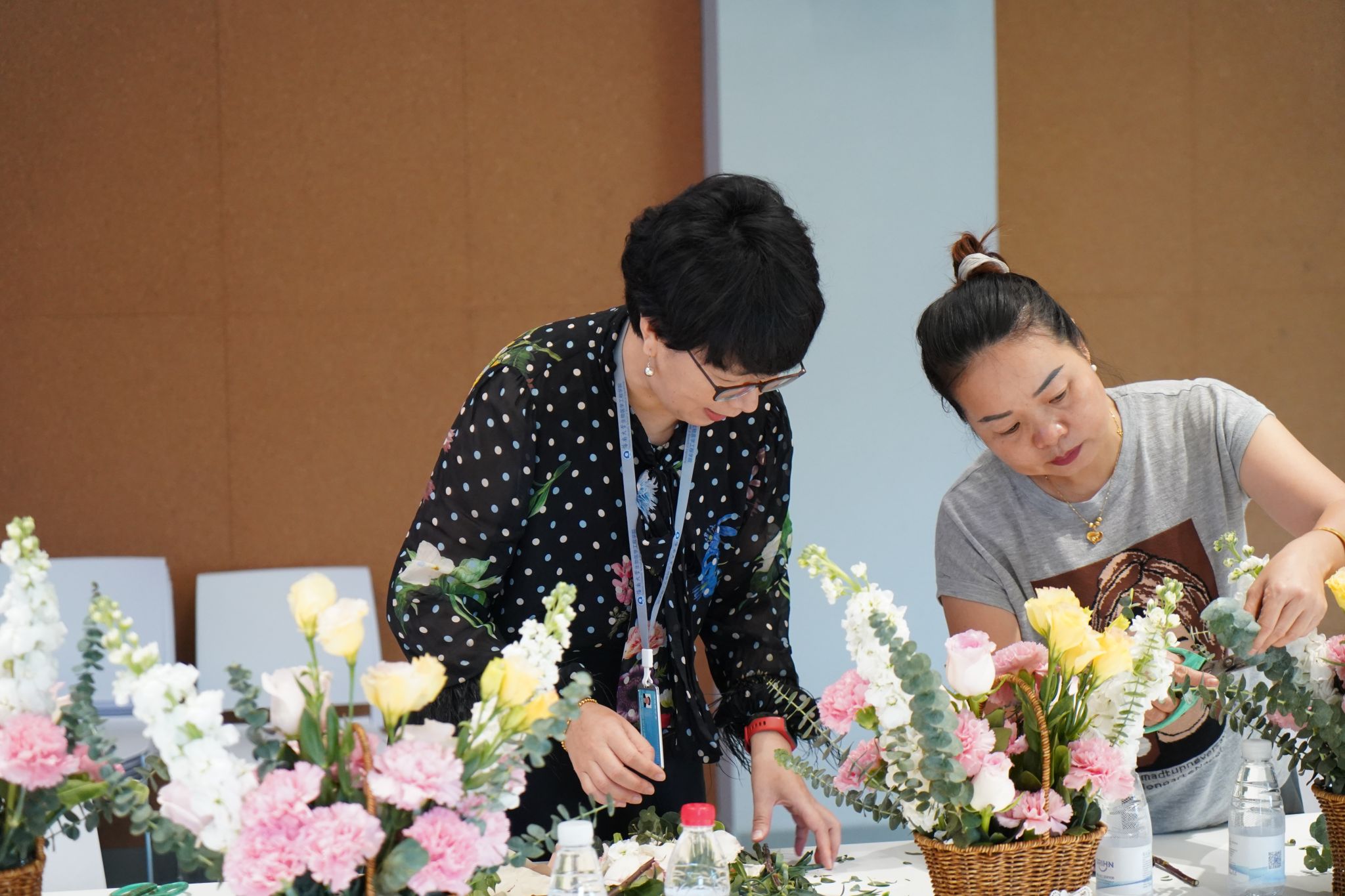 活动伊始,向所有女同胞们送上节日祝福。随后由插花老师为大家讲解花艺知识、插花造型及花语。在插花老师的指导下,大家修枝剪叶,精心搭配出各种造型,展现不同的美。
