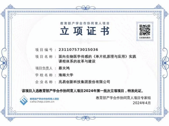 蔡夫鸿教授获批《面向生物医学传感的《单片机原理与应用》实践课程体系的改革与建设》项目,本项目将与兆易创新科技集团股份有限公司联合开展单片机在生物医学传感实践教学领域的合作教学。